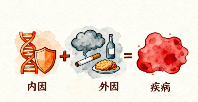 以前,我们总把生病归咎于生活习惯和环境——肺癌怪抽烟、肝癌怪喝酒、白血病怪甲醛房。但显然,这些外在的原因没法解释所有问题。但其实,现代医学早已给出了更全面的答案:疾病是“内因”加“外因”共同作用的结果。