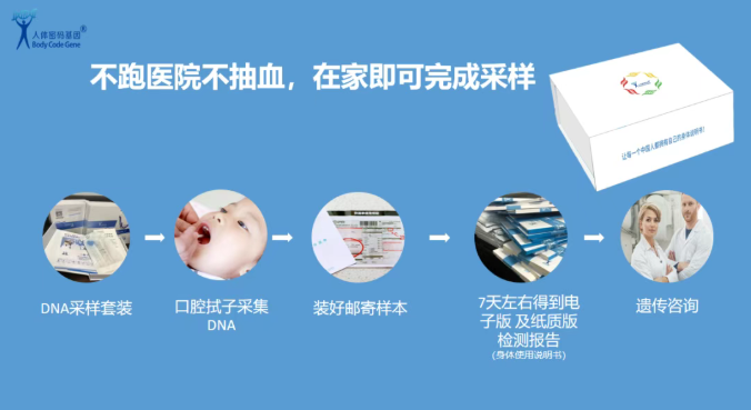 不用跑医院、不用抽血打针,在家就能完成采集DNA样本,步骤只有5步: